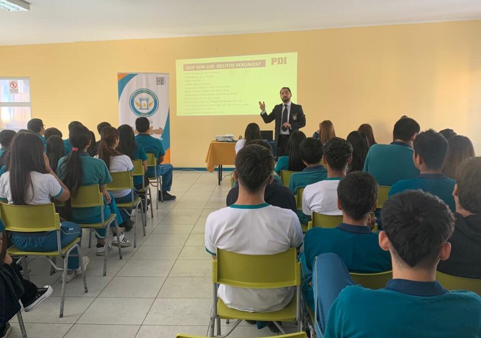 La actividad, impulsada desde convivencia educativa, contó con la participación del fiscal jefe de Arica, Anatolle Larrebeiti, quien abordó aspectos clave sobre las implicancias legales de las conductas delictivas en adolescentes. Asimismo, la instancia fue enriquecida con la intervención de la fiscal Verónica Roco y del subprefecto de la PDI, Hugo Mandiola, quienes complementaron la charla desde sus respectivas experiencias institucionales.